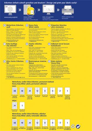 KezdőlapIrodaszerekIrodai papíráruEtikettekEtikett, 210x297 mm, poliészter, időjárásálló, 210x297 mm, AVERY ZWECKFORM, fehér, 20 etikett/csomag
