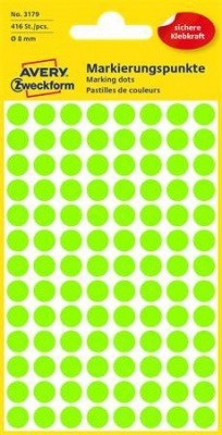 Etikett, 8 mm, kör, AVERY ZWECKFORM, neon zöld, 416 etikett/csomag